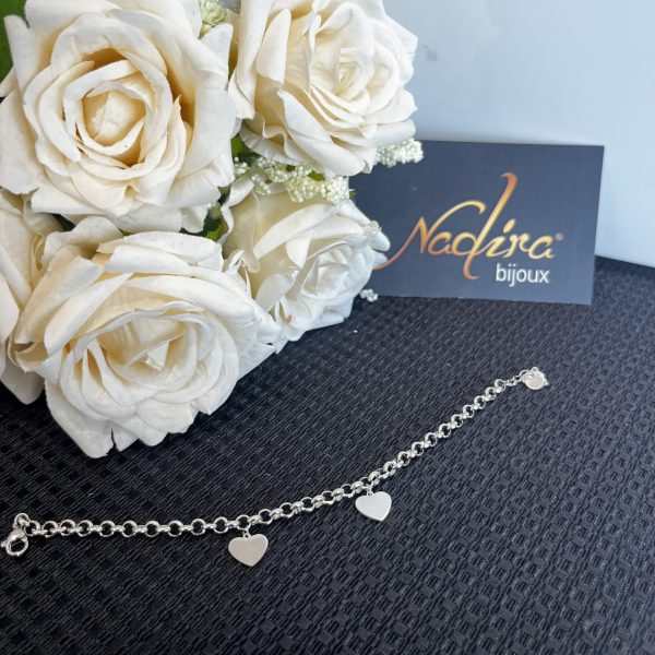 Bracciale catenina tonda con ciondoli doppio cuore. Realizzato in acciaio 316. Nichel Free.