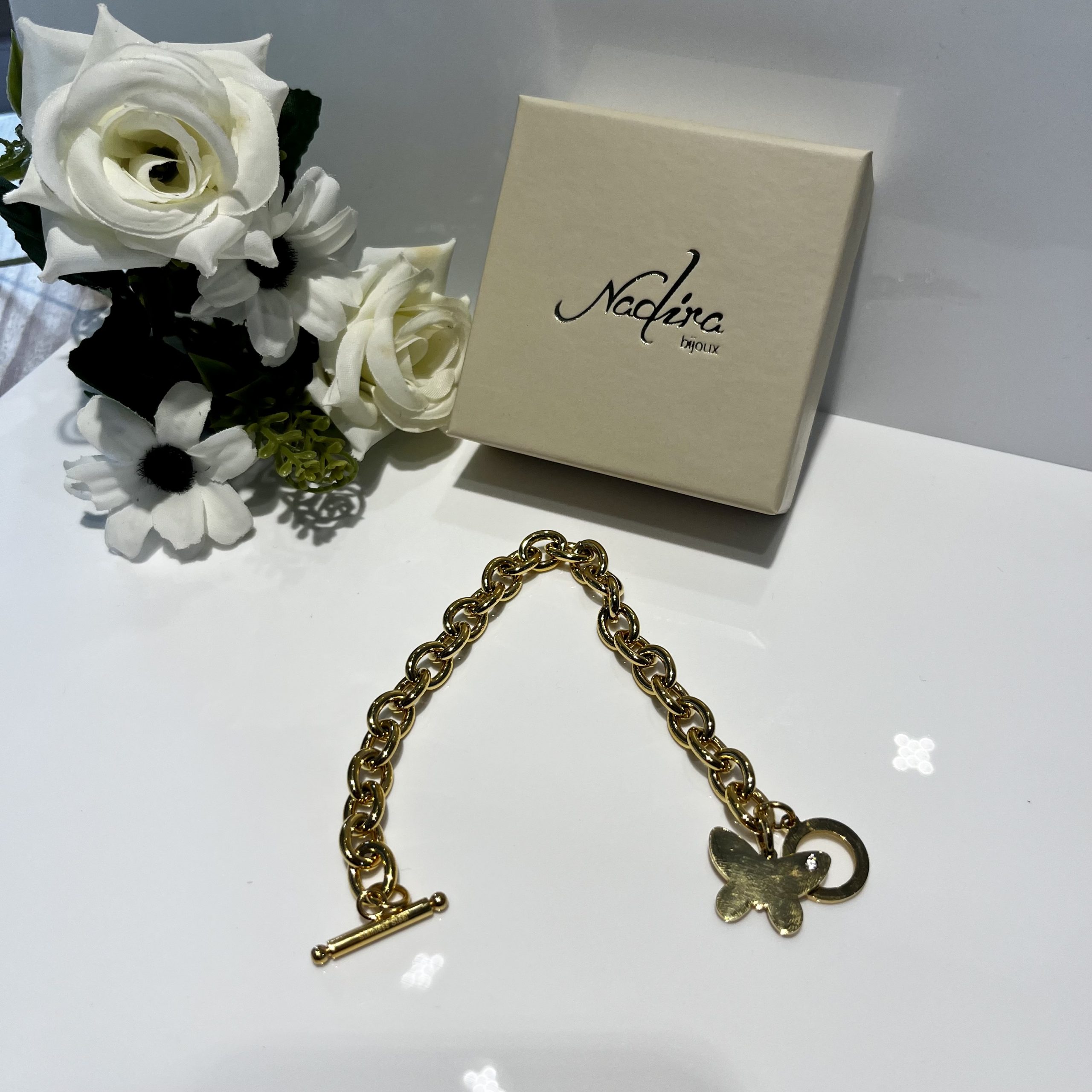 Bracciale catena ovale piccola con ciondolo farfalla. Realizzato in acciaio 316. Nichel Free.