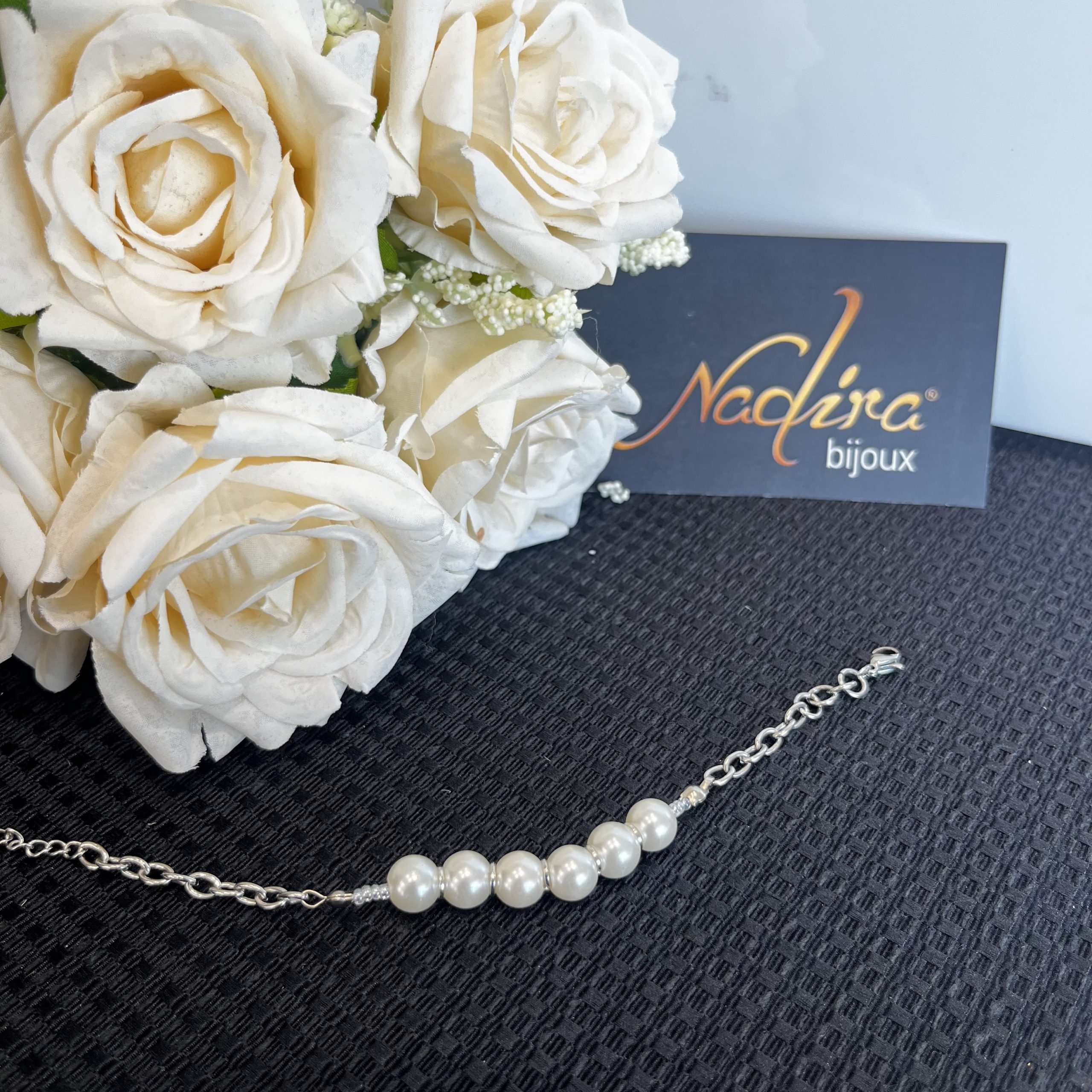 Bracciale con perle centrali. Realizzato con perle di resina e acciaio 316. Nichel Free.