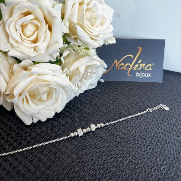 Bracciale catenina impreziosito con perline e strass. Realizzato in acciaio 316. Nichel Free.