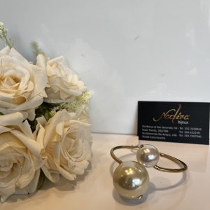 Bracciale rigido con doppia sfera. Realizzato con perle di resina e acciaio 316. Nichel Free.