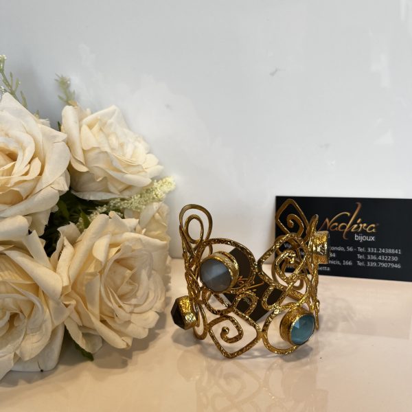 Bracciale rigido impreziosito con pietre dure. Realizzato in ottone e pietre dure. Nichel Free.