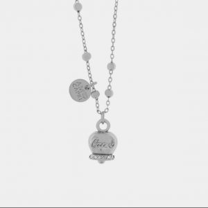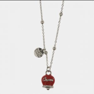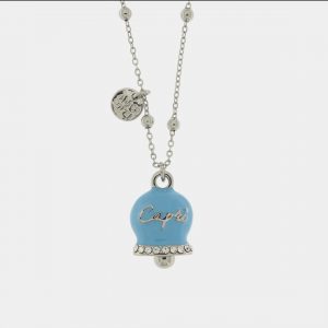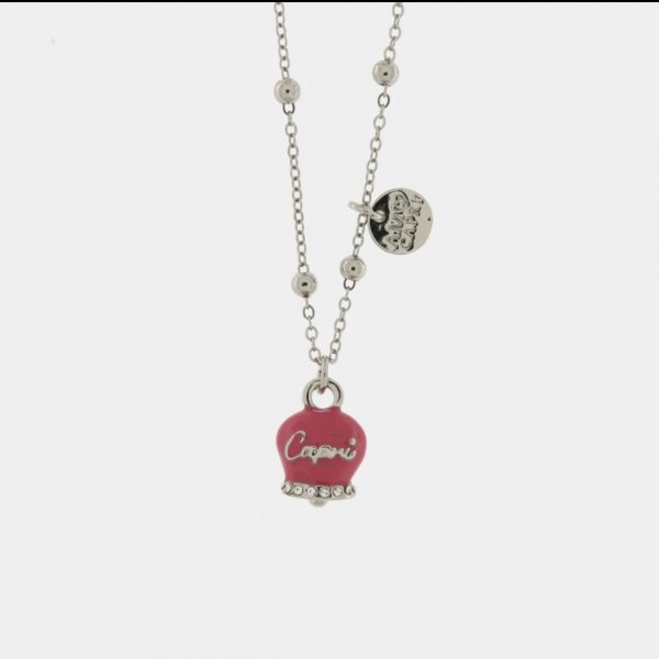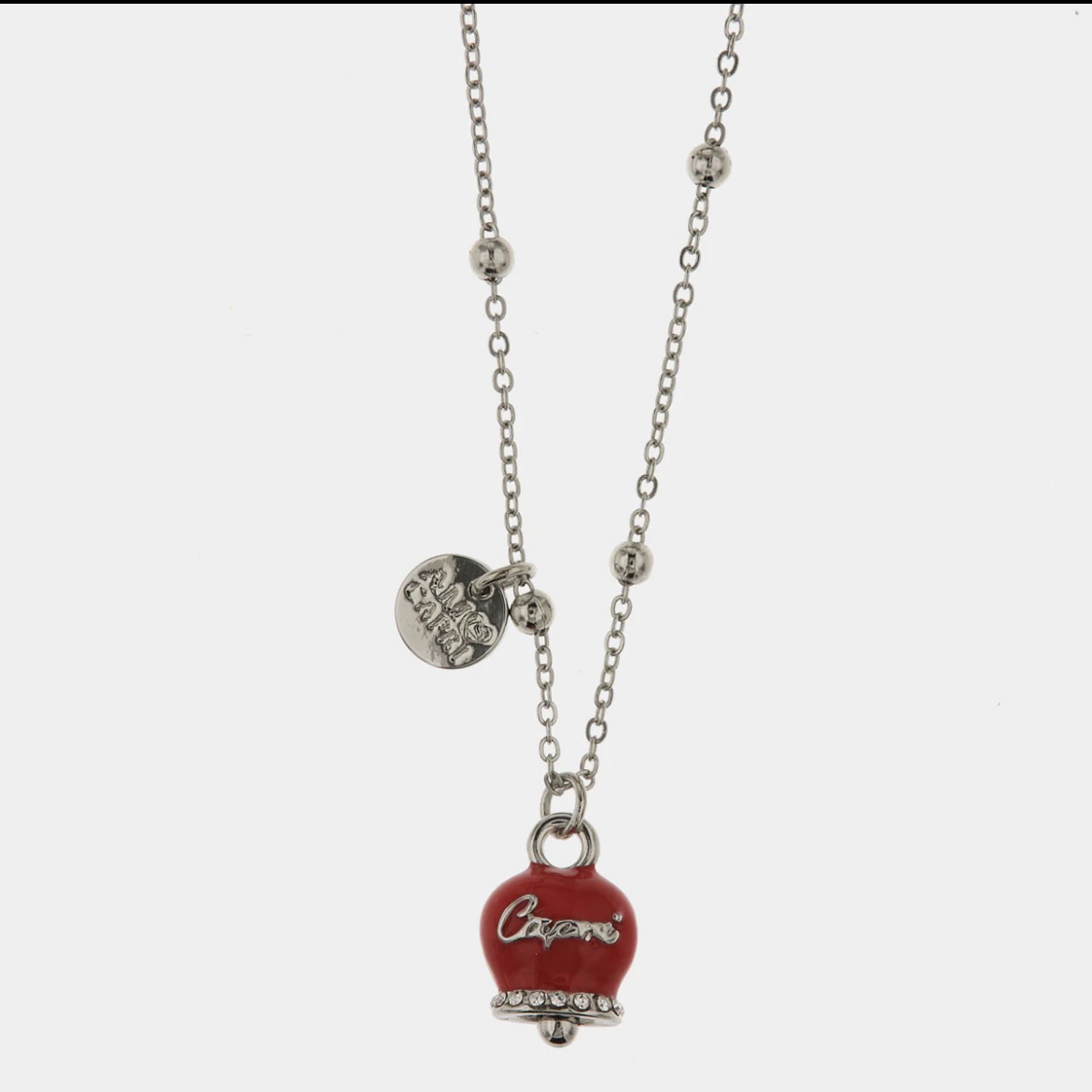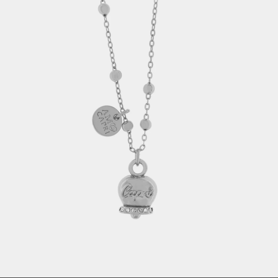 Collana in metallo con campanella portafortuna con scritto Capri impreziosita con strass.
