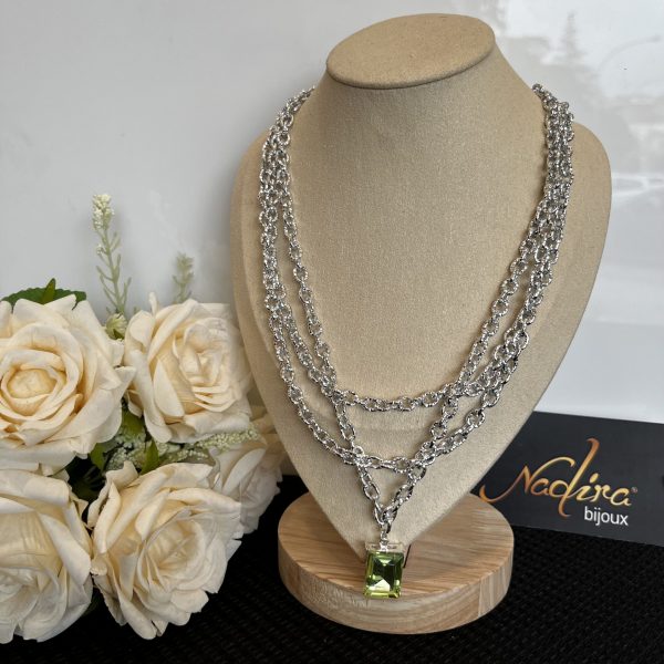 Collana multifilo catena tonda con ciondolo rettangolare. Lunghezza variabile 50-60 cm. Realizzata in acciaio 316. Nichel Free.