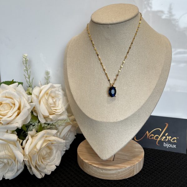 Collana catenina con ciondolo ovale blu notte. Lunghezza 50 cm. Realizzata in acciaio 316. Nichel Free.