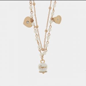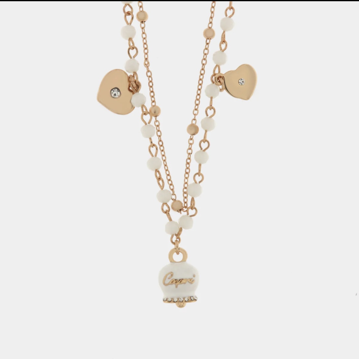Collana in metallo multifilo con campanella Capri e cuoricini pendenti.