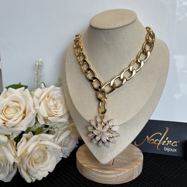 Collana catena groumette con ciondolo margherita impreziosita con strass. Lunghezza 60 cm. Realizzata in acciaio 316. Nichel Free.