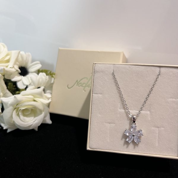 Collana margherita impreziosita con strass. Lunghezza 45-50 cm. Realizzata in acciaio 316. Nichel Free.