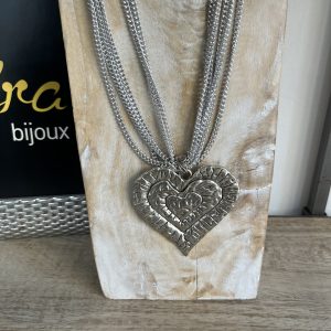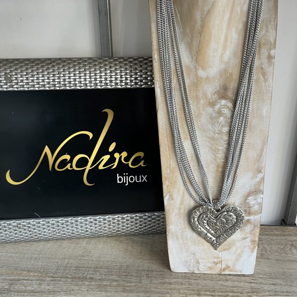 Collana a catena sottile multifilo con medaglione finale lavorato.