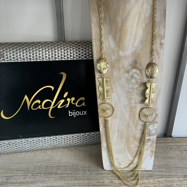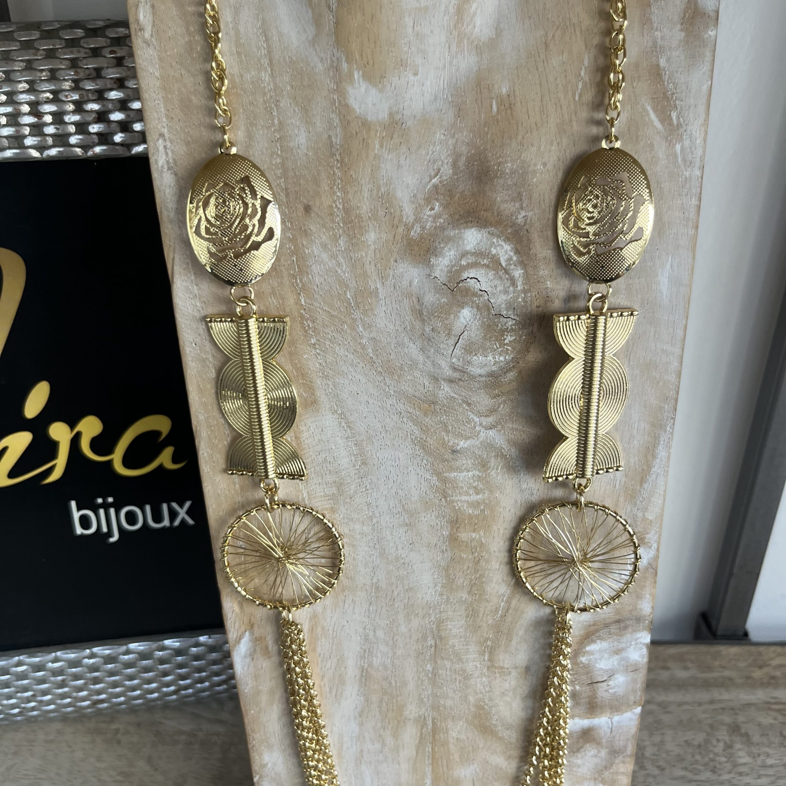 Collana lunga in ottone impreziosita con dettagli in filigrana.