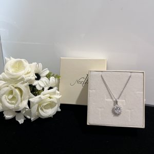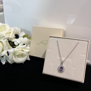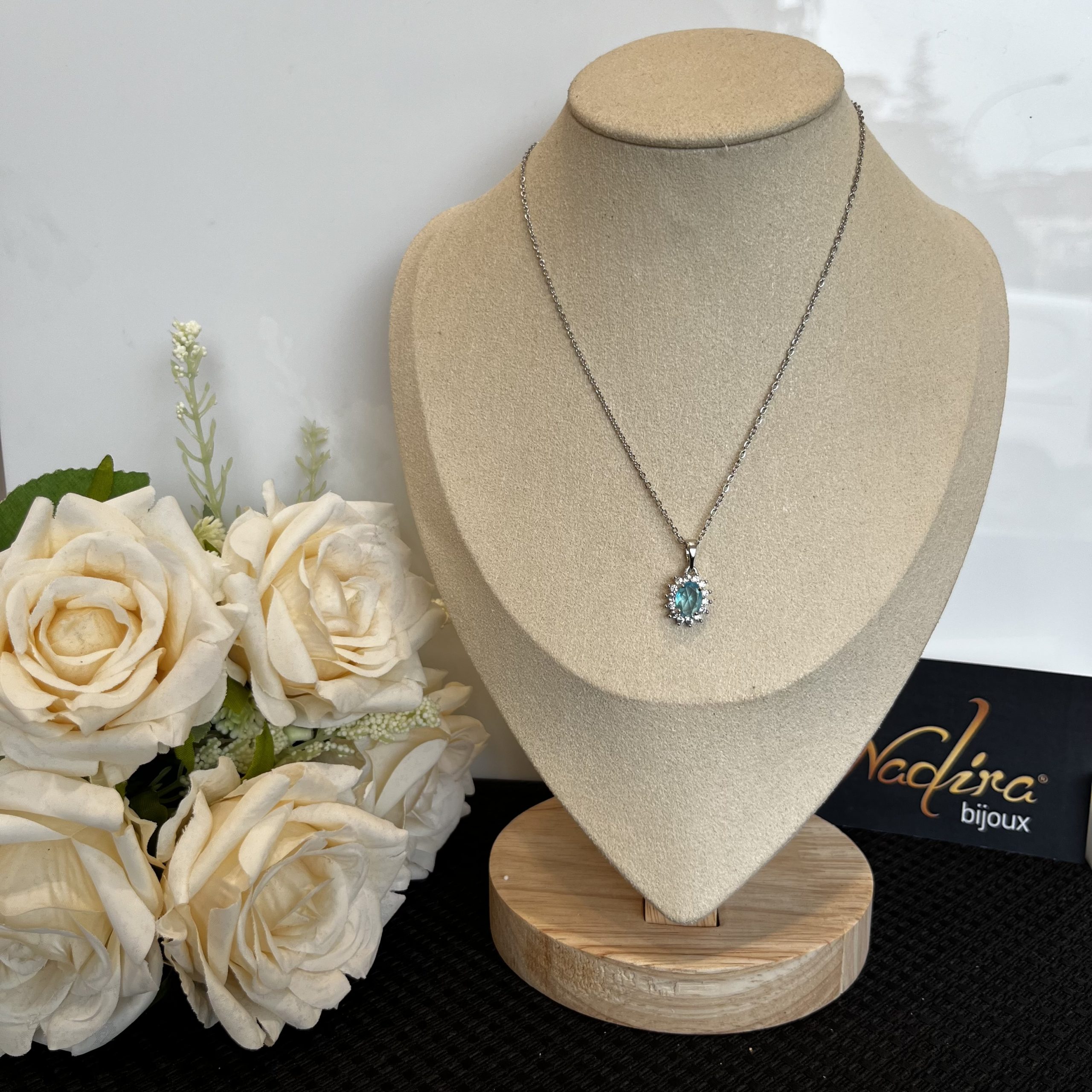 Collana con pendente ovale impreziosito da strass bianchi. Lunghezza 50 cm. Realizzata in acciaio 316. Nichel Free.