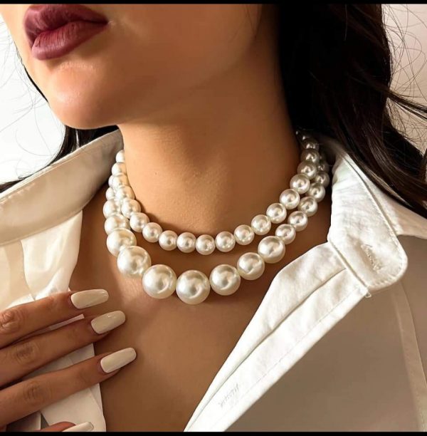 Collana doppio filo di perle. Lunghezza 45cm. Realizzata in acciaio 316 con perle in resina. Nichel free.