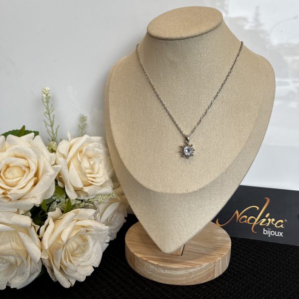 Collana punto luce impreziosito con piccole perline in acciaio.