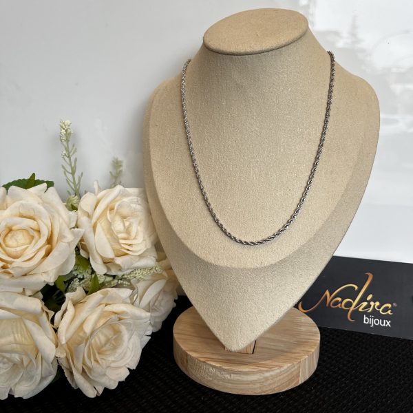 Collana treccia piccola. Lunghezza 50 cm. Realizzata in acciaio 316. Nichel Free.