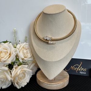 Collarino rigido serpente impreziosito con strass. Lunghezza 40 cm Realizzata in acciaio 316. Nichel Free.