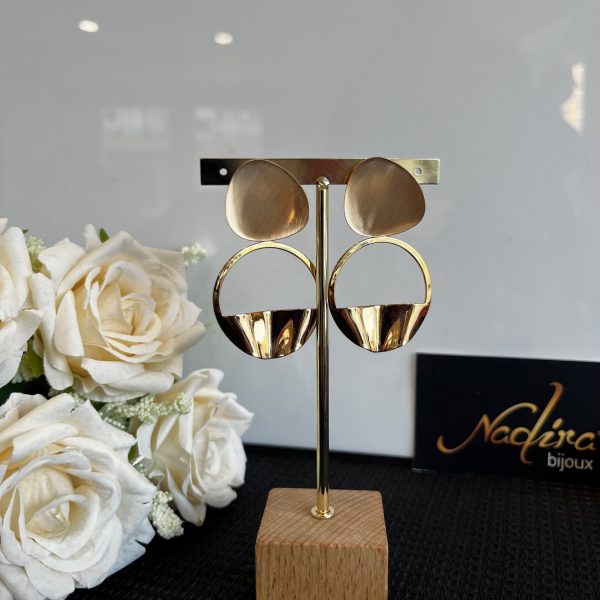 Orecchìni doppio cerchio pendenti con doppia lavorazione, lucida e opaca. Realizzati in acciaio 316. Nichel Free.