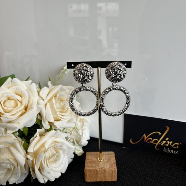 Orecchìni cerchi pendenti martellati. Realizzati in acciaio 316. Nichel Free.