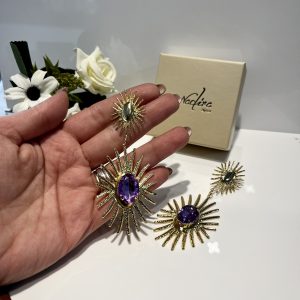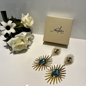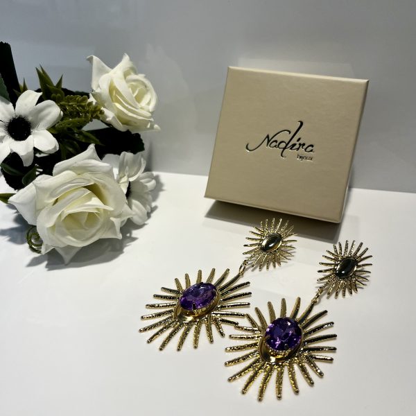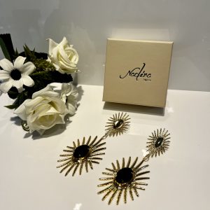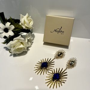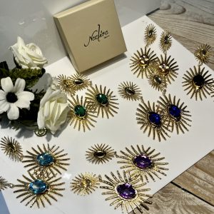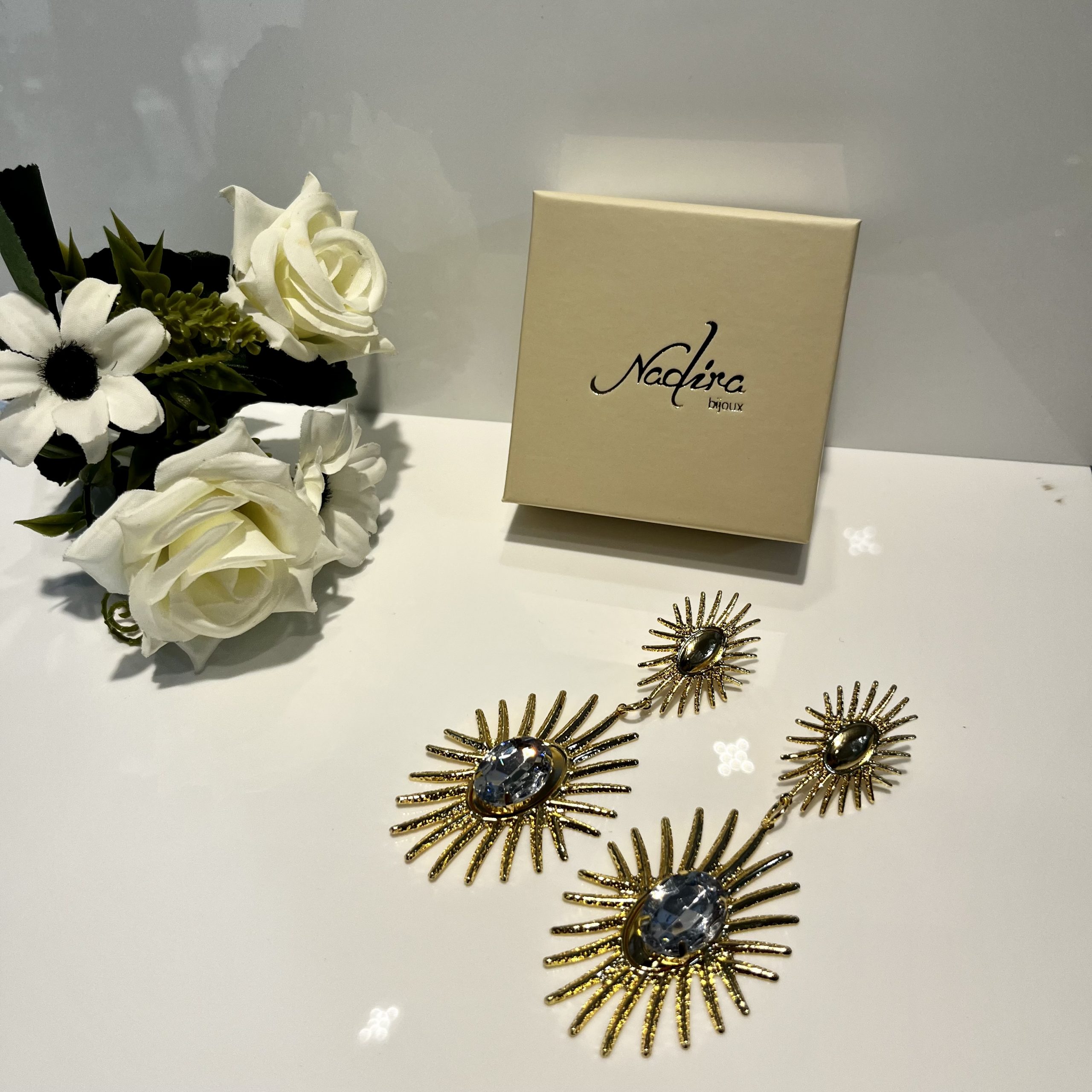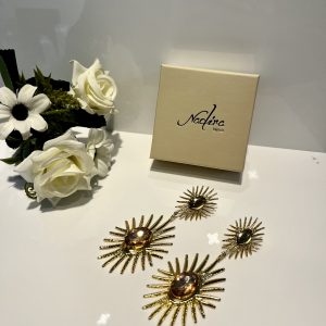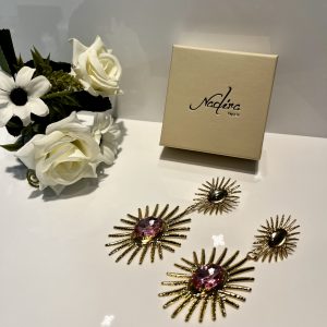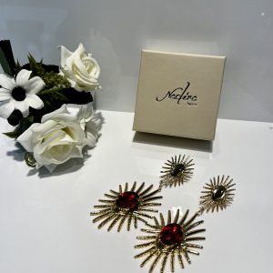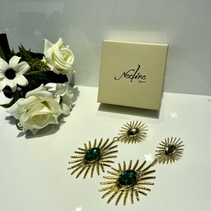 Orecchini pendenti in oro impreziositi con pietra centrale. Realizzati in acciaio 316. Nichel Free.